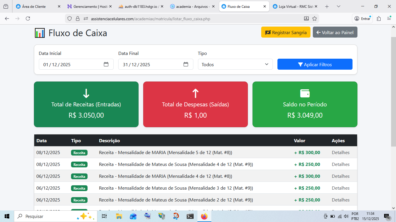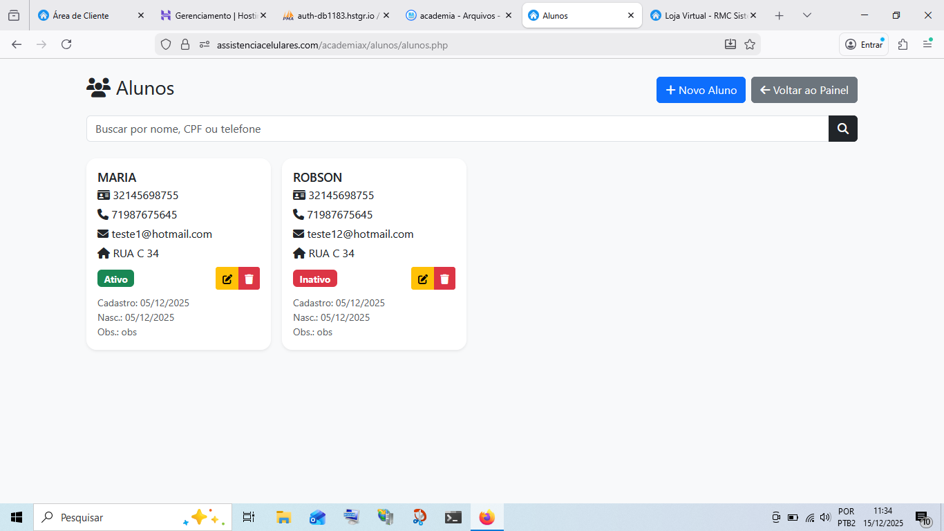 sistema gerenciar academia Cod 0020
